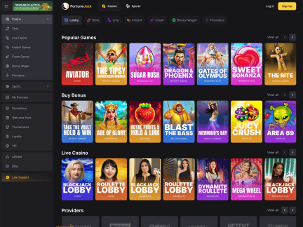 Fortunejack Casino’s gaming lobby is stacked with thousands of premium casino titles. The site is powered by leading software providers like Pragmatic Play, NetEnt, Red Tiger, Relax Gaming, Yggdrasil, BetSoft, and many others. This results in a very versatile portfolio of games across every category imaginable.